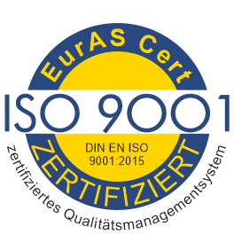 Zertifiziert nach DIN EN ISO 9001:2015 (Qualitätsmanagement) und DIN EN ISO 14001:2015 (Umweltmanagement) durch EurAS Cert. Standardisierte Prozesse, dokumentierte Abläufe, nachweisbare Qualität.
